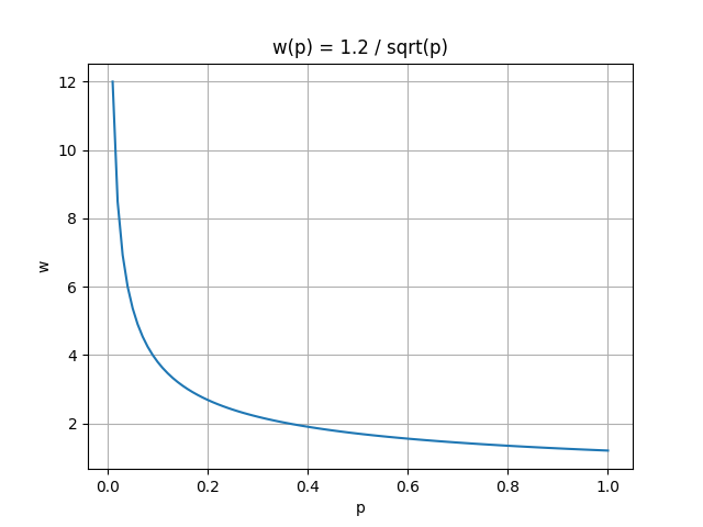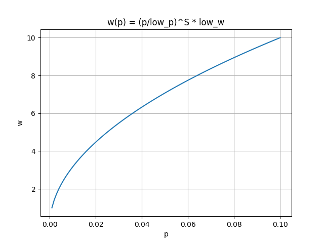 From the figure above, it can be seen that when the packet loss rate p increases, the congestion window w also increases, but the rate of increase is constantly decreasing. This means that in a network environment with high packet loss rates and high bandwidth, the congestion window can still reach a sufficient height, thus making full use of network resources.